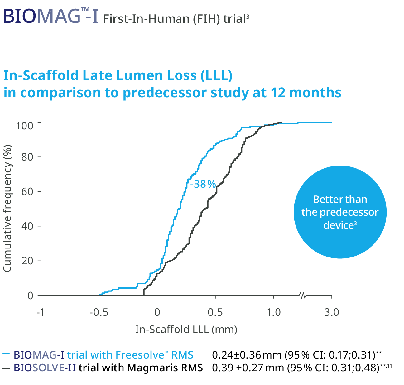 The in-scaffold Late Lumen Loss (LLL) for Freesolve™ RMS is on the level of a contemporary DES10