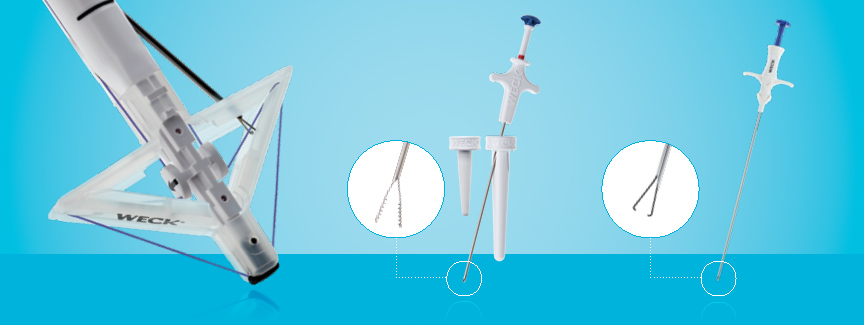 The disposable Weck EFx® Suture Passer and reusable Pilling® Berci Suture Passer provide simple and secure options for full-thickness closure. Both devices: