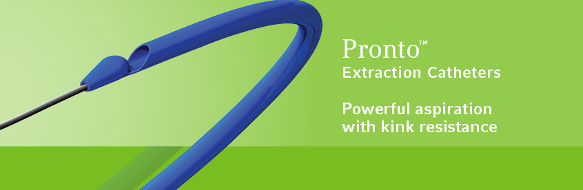 Pronto® Extraction Catheters are designed for the removal of fresh, soft, emboli and thrombi from vessels in the coronary and peripheral vasculature. The uniformly large extraction lumen offers thrombus extraction with enhanced kink resistance and deliverability over a 0.014” guidewire. Each version of the Pronto® Catheter features the patented Silva distal tip, designed to center the catheter tip during insertion and extraction.
